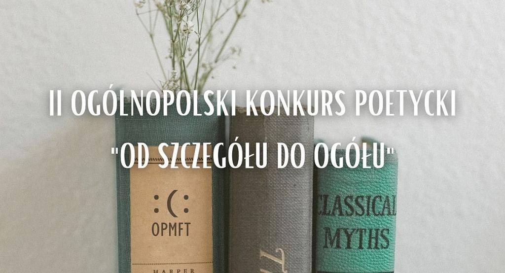 Wejherowskie Centrum Kultury i I Liceum Ogólnokształcące im. Króla Jana III Sobieskiego w Wejherowie serdecznie zapraszająmłodzież w wieku od 14 do 20 lat do wzięcia udziału w II Ogólnopolskim Konkursie Poetyckim Od szczegółu do ogółu! Celem konkursu jest stworzenie wiersza inspirowanego twórczością Wisławy Szymborskiej.