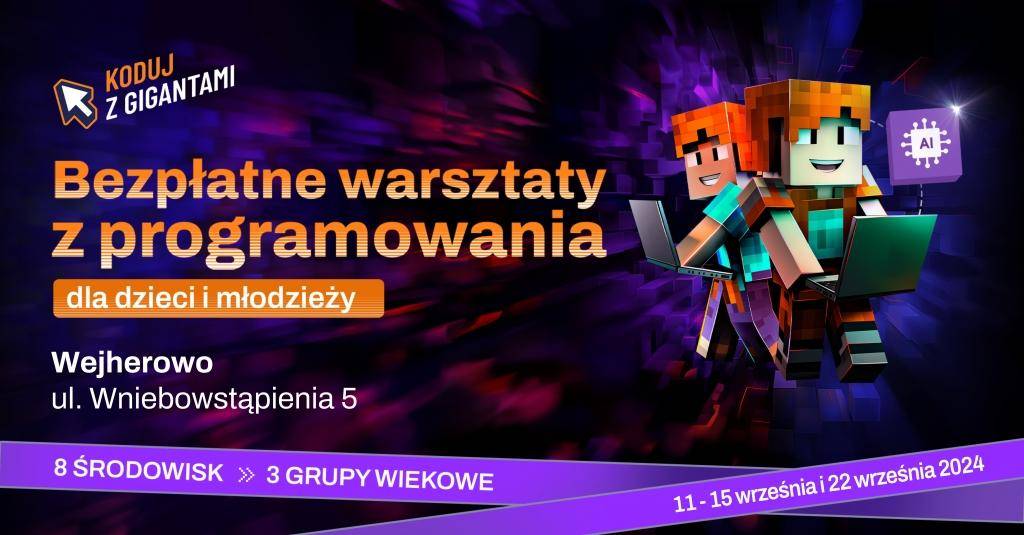 Giganci Programowania zapraszają na 15. edycję bezpłatnych warsztatów z programowania - Koduj z Gigantami. Już teraz każdy może zapisać swoje dziecko na zajęcia w ramach najnowszej odsłony wydarzenia. Tym razem tematem przewodnim jest hasło “Cyber Przygoda w świecie AI”. Uczestnicy będą mieli okazję poznawać tajniki kodowania przy wykorzystaniu narzędzi AI. Na wszystkich zainteresowanych czeka aż 8 rodzajów zajęć, na które można dołączyć online lub stacjonarnie.
