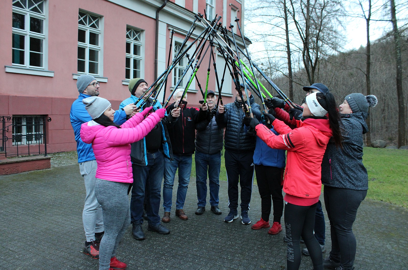 Do grupy ćwiczących dołączyli również przypadkowi spacerowicze, którym spodobała się ta forma rekreacji. Żeby mogli wspólnie potrenować wypożyczono im profesjonalne kijki.