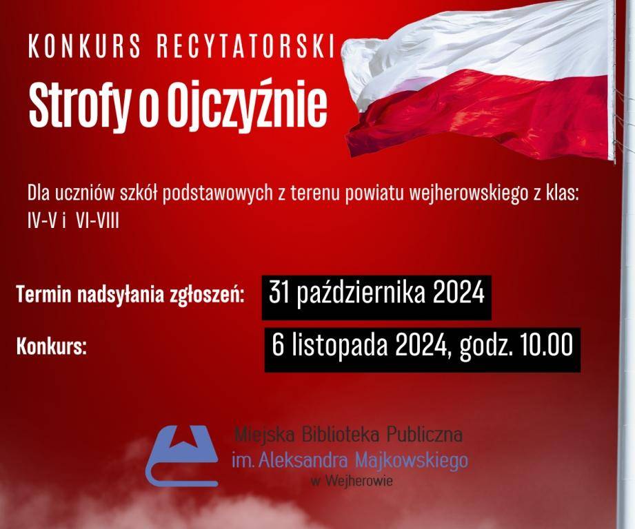 Miejska Biblioteka Publiczna im. Aleksandra Majkowskiego w Wejherowie organizuje kolejną edycję konkursu recytatorskiego "Strofy o Ojczyźnie", która odbędzie się 6 listopada w bibliotece.