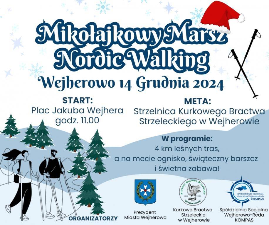 Sukces Niepodległościowego Marszu Nordic Walking zachęcił organizatorów do powtórzenia wyjątkowego spaceru w duchu nordic walking. W zimowej aurze 14 grudnia o godz. 11.00 zwolennicy aktywnego spędzania wolnego czasu spotkają się na Placu Jakuba Wejhera na Mikołajkowym Marszu Nordic Walking.