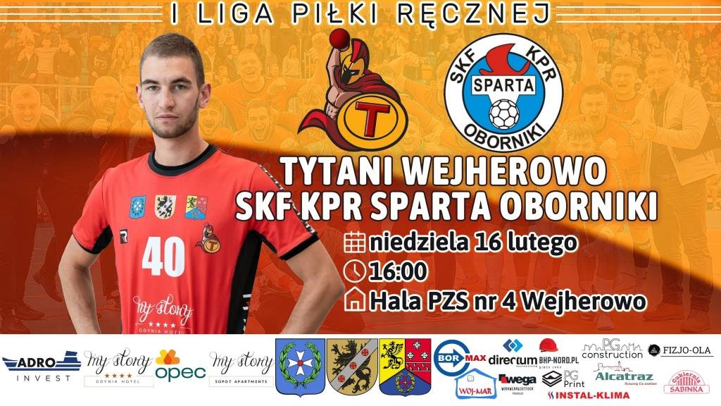 Tytani w nowy rok weszli bardzo dobrze. W dwóch rozegranych spotkaniach na własnej hali odnieśliśmy zwycięstwa z Grudziądzem i Szczypiorniakiem Olsztyn. Pozwoliło to nam przesunąć się na ósme miejsce w ligowej tabeli. Ciężko wskazać faworyta tego meczu. Zapowiada się bardzo wyrównana batalia ,w której z pewnością będzie dużo walki na boisku i każda z drużyn da z siebie 100% by wygrać. W pierwszej rundzie tego sezonu Sparta Oborniki okazała się lepsza, pokonując Tytanów 30-25. To wydarzenie z pewnością będzie dodatkową motywacją dla gospodarzy, którzy pragną zrewanżować się rywalom za tę porażkę. Mecz zapowiada się jako prawdziwe widowisko, w którym nie zabraknie emocji i zaciętej walki. Bardzo liczymy na pełną halę kibiców naszego zespołu, która poniesie nas do miejmy nadzieję kolejnego zwycięstwa!