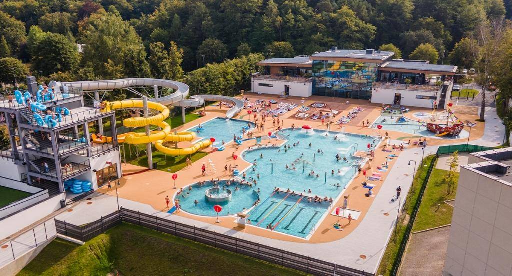 Centrum Integracji Społecznej Wodne Ogrody – basen rekreacyjny z wodnymi atrakcjami i podgrzewaną wodą, dzika rzeka, ławki z masażem powietrznym, kurtyna wodna, siatka do wspinaczki, zjeżdżalnie, jacuzzi, wodny plac zabaw.