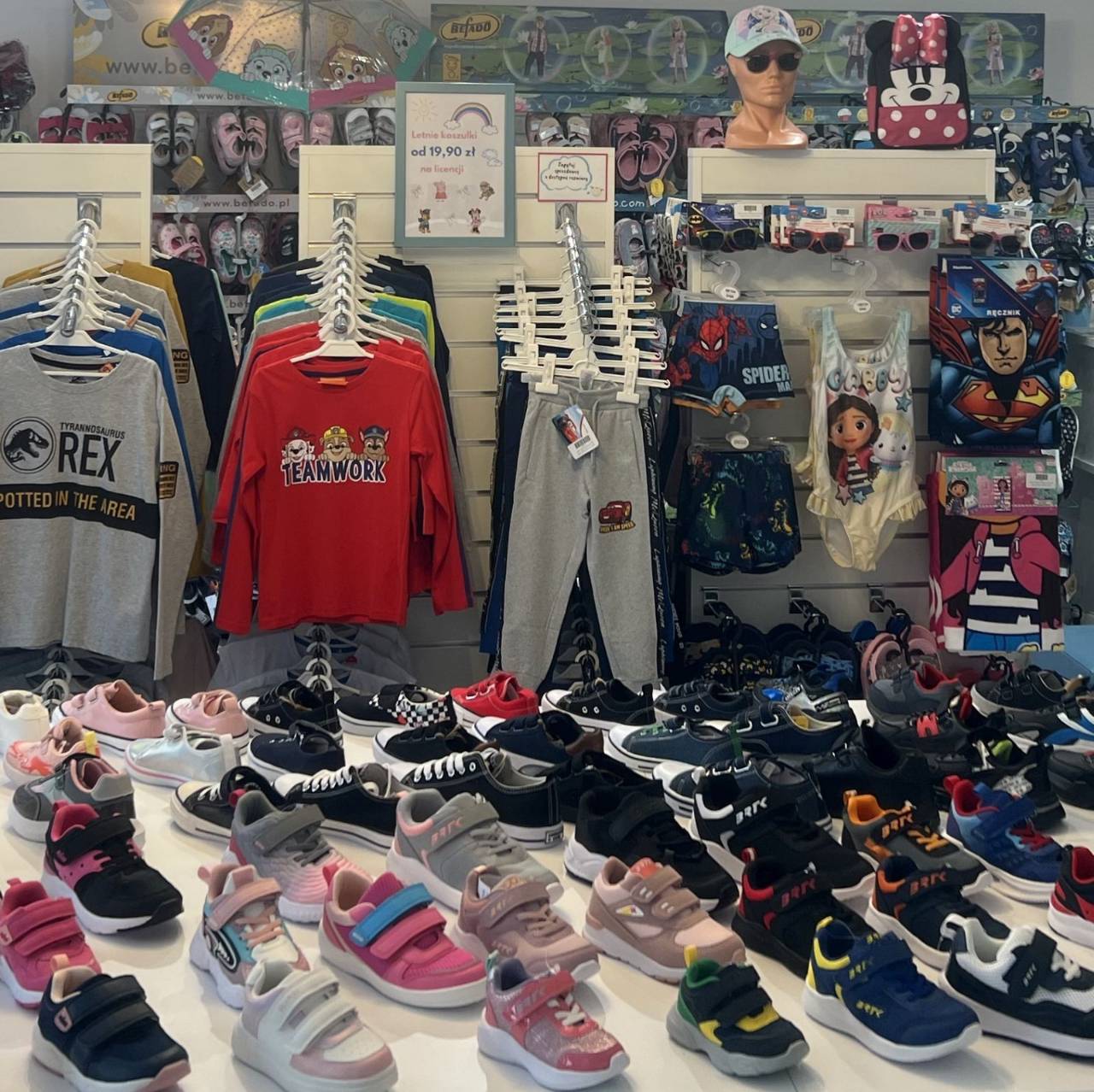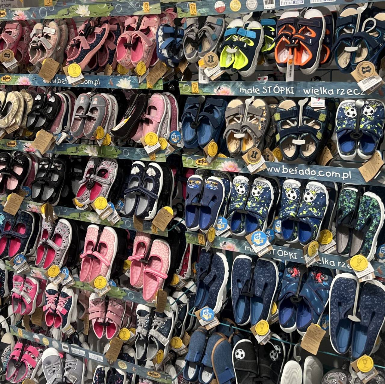 Szeroki asortyment: Sklep oferuje różnorodne modele obuwia dostosowane do potrzeb dzieci w różnym wieku, od niemowlaków po nastolatków. W asortymencie znajdują się buty na każdą okazję i porę roku m.in. trampki, balerinki, kozaki, śniegowce, kapcie, sandały oraz kalosze dziecięce. Oprócz obuwia, sklep oferuje również odzież oraz dodatki, zapewniając kompleksowy i modny ubiór dla maluchów.
