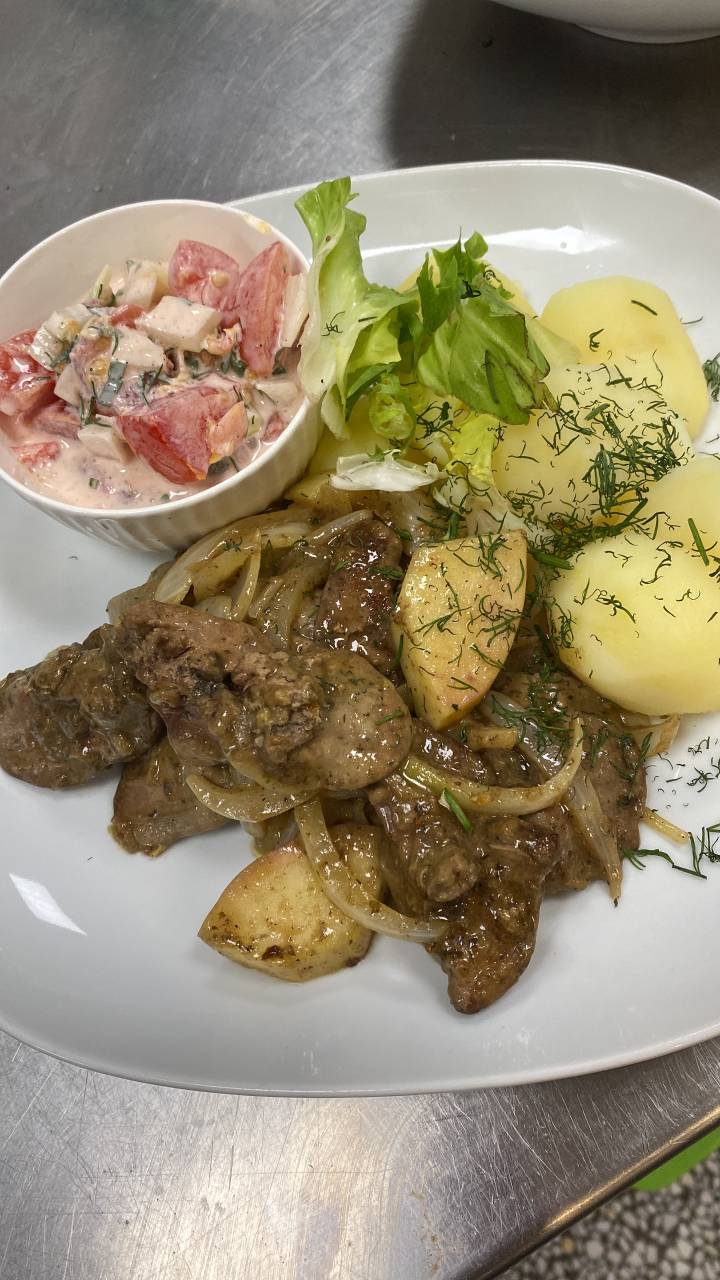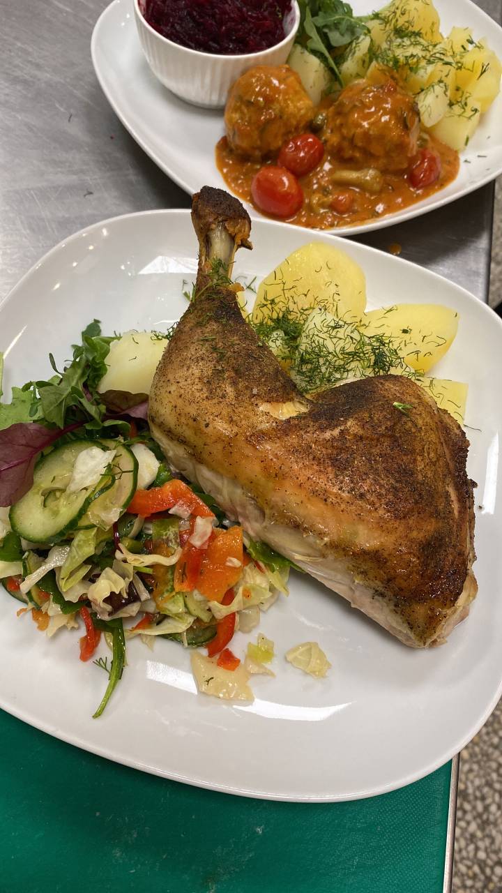 Codziennie inne danie dnia w skład Dania dnia wchodzi danie główne z surówkami i ziemniaki zupa i kompot.