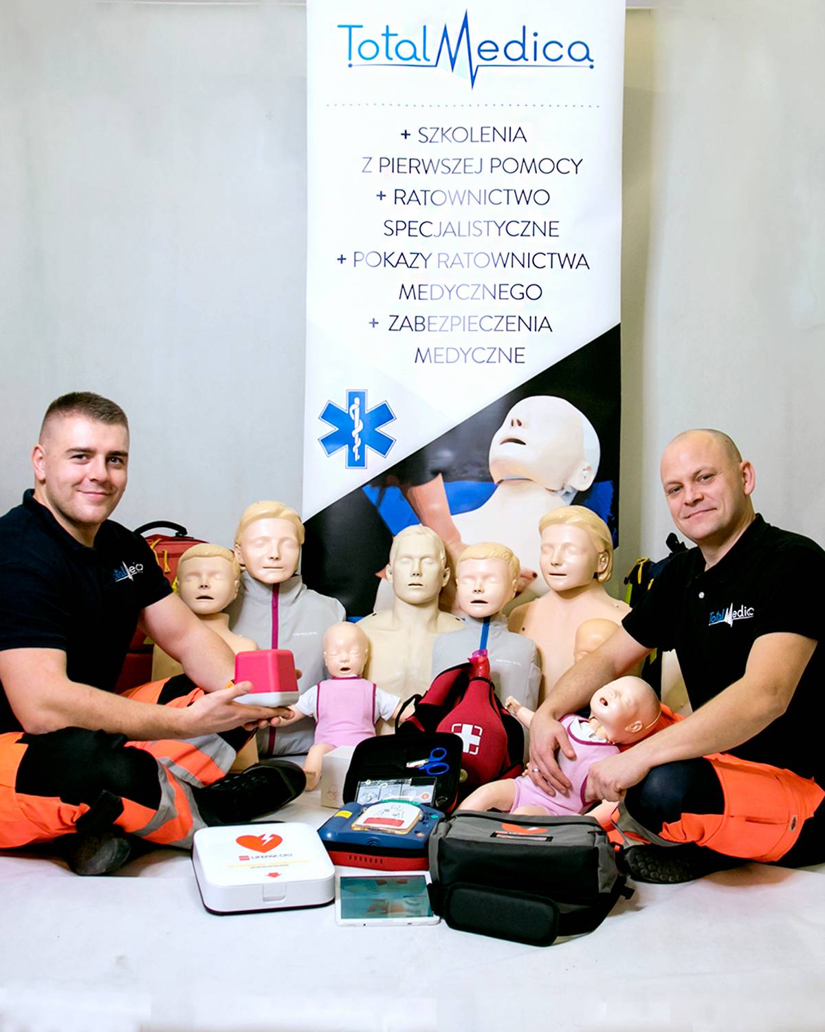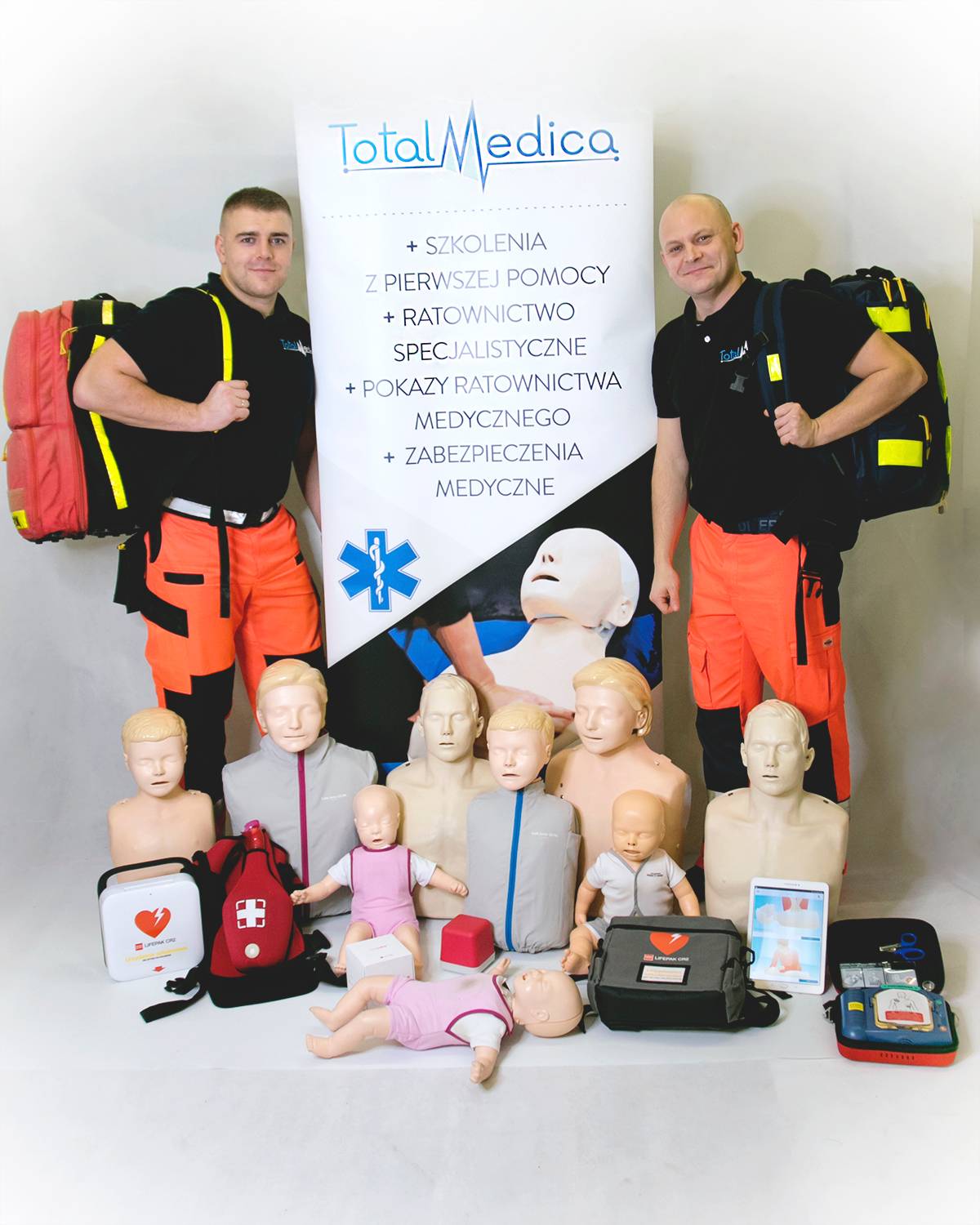 Totalmedica ma w swojej ofercie szkolenia dla firm, instytucji i osób prywatnych. Priorytetem firmy jest prowadzenie szkoleń z zakresu pierwszej pomocy, teoria poparta jest rzetelnymi zajęciami praktycznymi na najnowszym i profesjonalnym sprzęcie. Celem nadrzędnym jest przygotowanie kursantów do udzielania pierwszej pomocy w sposób profesjonalny i bezpieczny. To, co wyróżnia Totalmedicę, to oferta, która zawsze jest spersonalizowana pod klienta, a program szkolenia dokładnie dobrany do specyfiki wykonywanej przez kursantów pracy. Nasza kadra szkoleniowa to 3 ratownicy medyczni czynni zawodowo, działający nie tylko w Państwowym Ratownictwie Medycznym, ale także w medycynie taktycznej oraz szkolnictwie wyższym. Kadra szkoleniowa ustawicznie podnosi własne kwalifikacje, aby zakres świadczonych na szkoleniach usług, był na jak najwyższym poziomie.