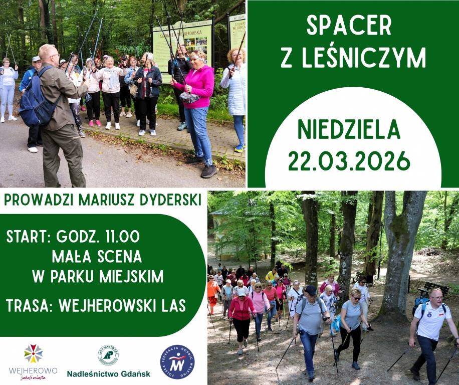 Po raz kolejny zapraszamy na wspólny spacer nordic walking! W najbliższą niedzielę, 22 marca o godzinie 11.00, wyruszamy spod małej sceny w Parku Miejskim szukać pierwszych oznak wiosny w wejherowskim lesie.