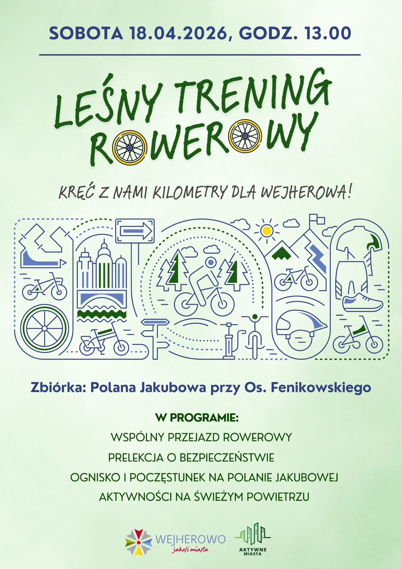 W sobotę, 18 kwietnia, zapraszamy mieszkańców w każdym wieku na Leśny Trening Rowerowy, którego celem jest zachęcenie do wzięcia udziału w akcji Aktywne Miasta.